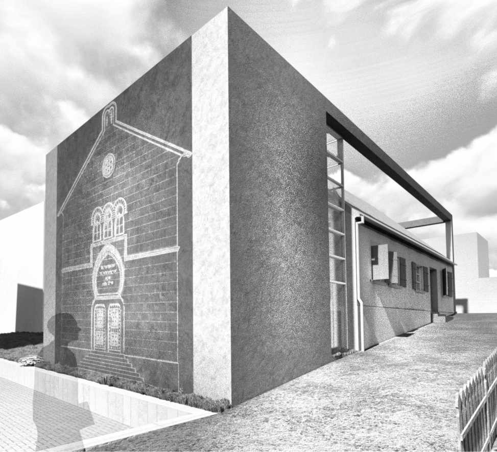Entwurf des Anbaus an der Alten Schule mit Replik der historischen Fassade der ehemaligen Synagoge in Heidenheim